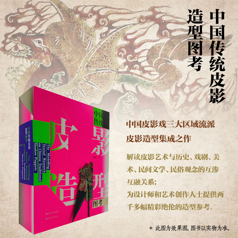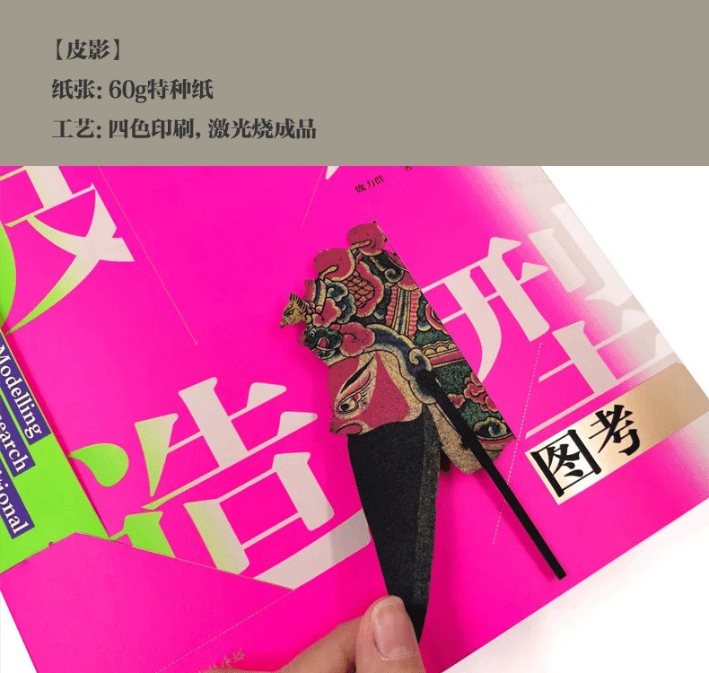 《中國傳統皮影造型圖考》是我國皮影戲三大區域流派皮影造型的整合之作,書中精選2500多張不同風格的人物、動物、器物和景片等,形成系統的中國皮影造型考證, 詳細 論述我國早期皮影造型相對一致性藝術的特徵、三大區域性特徵的形成、皮影造型中的民俗意識、操縱表演中的皮影動態造型,透過考證解析皮影戲發展歷史與傳播脈絡。