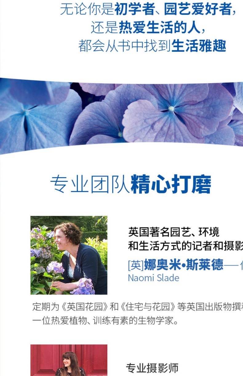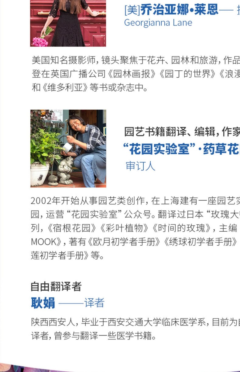 英國著名園藝、環境和生活方式的記者和攝影師,定期為《英國花園》和《住宅與花園》等英國出版物撰稿,更是一位熱愛植物、訓練有素的生物學家。