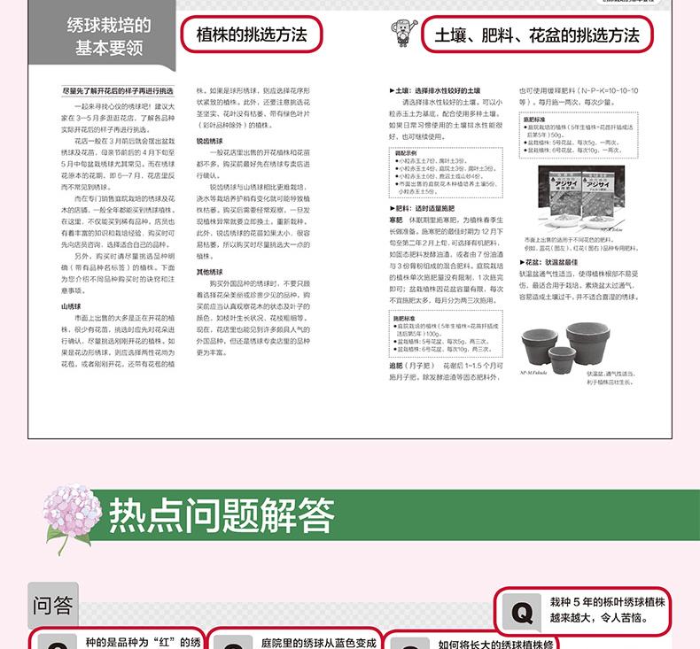 不僅介紹了繡球的起源與歷史背景,更逐一品種詳解了栽培、種植、修剪、扦插、病蟲害等一系列容易遇到的問題,讓你的花兒得到更好的照顧,展示靚麗的姿態