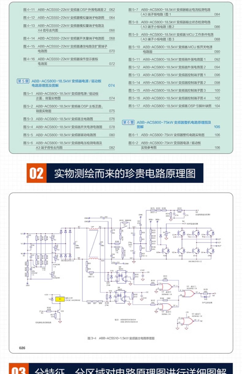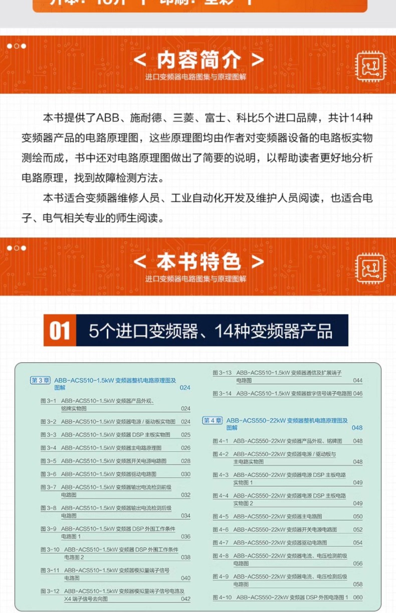 本書提供了ABB、施耐德、三菱、富士、科比5個進口品牌,共計14種變頻器產品的電路原理圖,這些原理圖均由作者對變頻器設備的電路板實物測繪而成,書中還對電路原理圖做出了簡要的說明,以幫助讀者更好地分析電路原理,找到故障檢測方法。