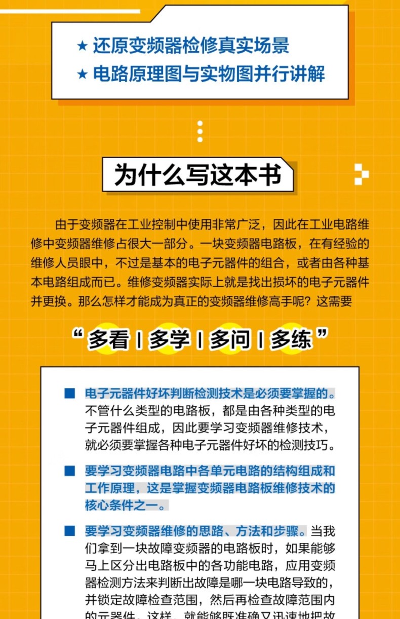 本書適合變頻器維修人員、工業自動化開發及維修人員閱讀,也適合電子、電氣相關專業的師生閱讀。