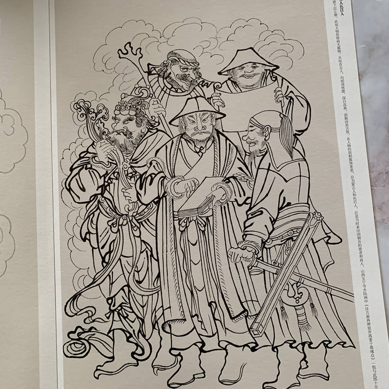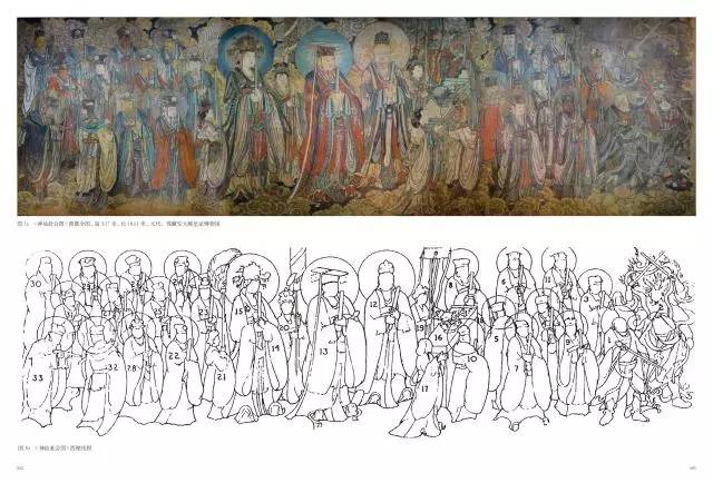 景安寧所著的《元代壁畫(神仙赴會圖第2版)(精)》一書,文字部分主要由六章組成,對壁畫做了初步描述、分析、討論和解釋。 第一章「壁畫的來歷與現狀」對壁畫的背景、轉賣、修復保護、安裝和安裝後展出的現狀做進一步說明。 第二章「壁畫的研究」介紹國外發表的論文專題論文、研究成果和存在的問題。 第三章「壁畫新探」討論與壁畫內容有關的歷史事件,對壁畫的內容做了新的解釋。 第四章「六禦體系的形成」和第五章「四聖」圍繞著壁畫中最重要的十位神討論道教神仙體系和這個體系在宋元期間演變的歷史過程。 第六章「壁畫的風格和年代」分析壁畫的技術風格特色,並在風格和內容的基礎上推測壁畫的繪製年代。 文字部分的最後是簡短*結。