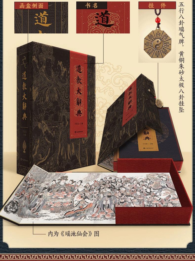 【刷邊盒函版】道教大辭典 道教歷史文化現狀大型專科辭典 (附贈 神仙圖冊+知識圖譜+綾布捲軸畫+藏書票)