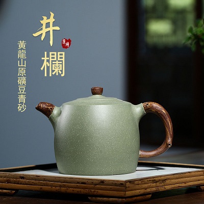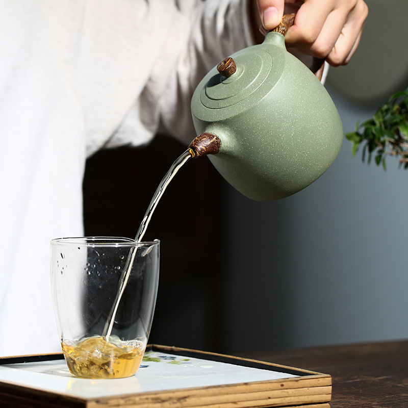 原礦綠泥手工荷葉壺
