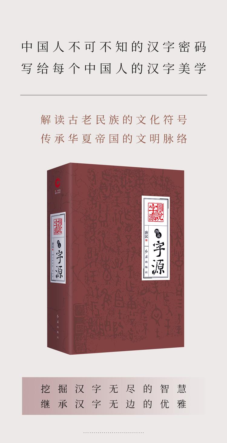 《圖說字源》是一本介紹漢字起源與流變的讀本,匯集了著名語言學家唐漢先生在漢字字源研究方面所取得的成果。 作者秉承嚴謹地治學態度,蒐集各方有關漢字字源的資料,從古漢字學研究等學科入手,發現了漢字形成過程中許多有趣而又有規律性的現象。 本書從漢字與動物、漢字與植物、漢字與天地、漢字與人體、漢字與兩性、漢字與戰爭、漢字與民生、漢字與文化等方面圖文並茂地闡釋了漢字的諸多奧秘。