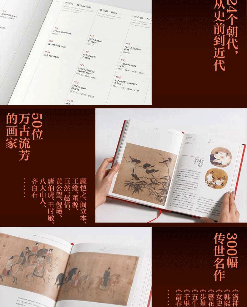 高清圖片大尺幅呈現,重要作品增加細節圖,沉浸式欣賞色彩、線條、構圖、意蘊;硬殼精裝,封面雙面印刷,展開背面即是海報;內頁用象牙白特種紙張,還原古典中國意蘊。