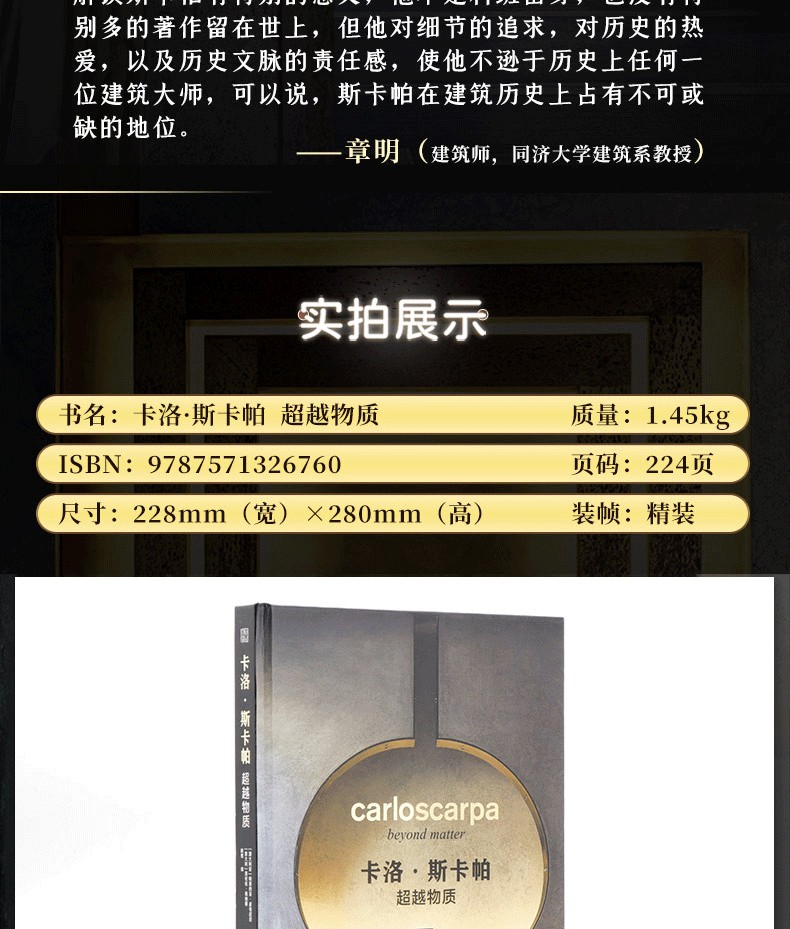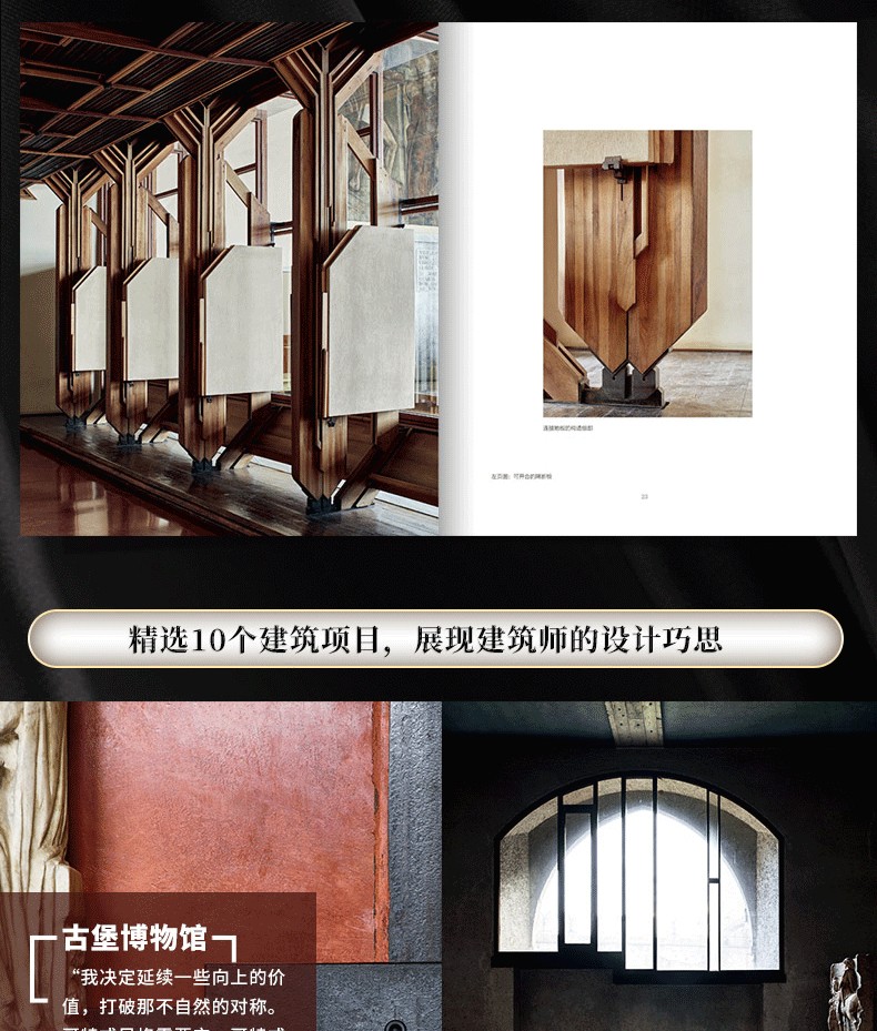 我們探索質地和光賦予建築的節奏,以及簡單的線條所表達的詩意,去感受斯卡帕在建築整體以及室內設計細節方面對美近乎苛刻的執著。 值得一提的是,書中的圖像呈現出許多美輪美奐的建築細節。 本書無疑會帶給讀者一場視覺饗宴。