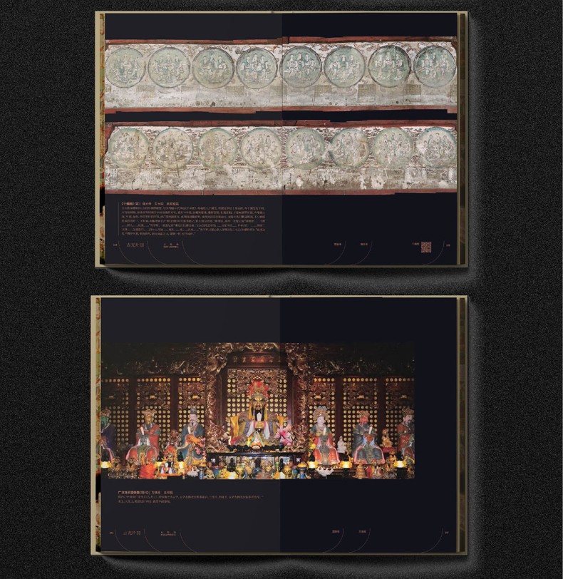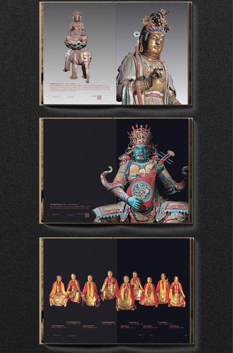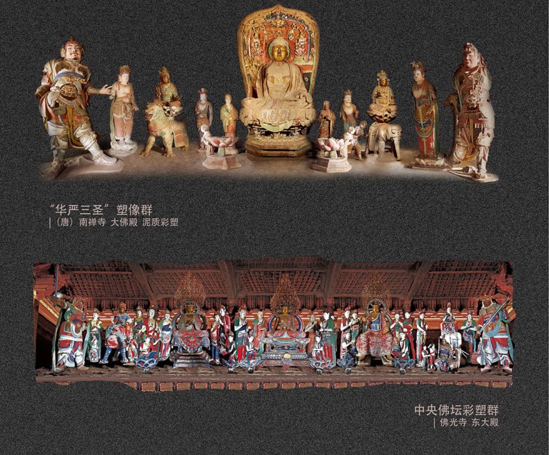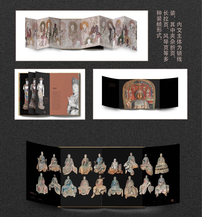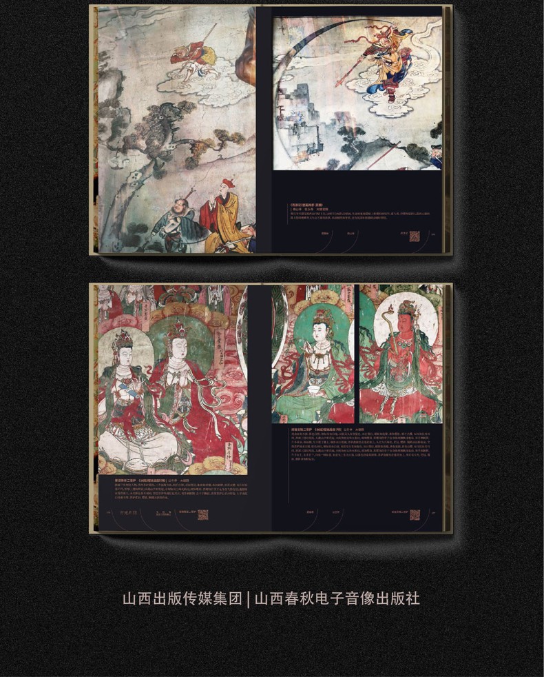 書中收錄了唐代至民國時期的五台山各類壁畫與塑像,如:各類文殊塑像,供養人塑像,本身故事,佛傳,經變,飛天,三國演義,善財童子,西遊記,水路壁畫等。