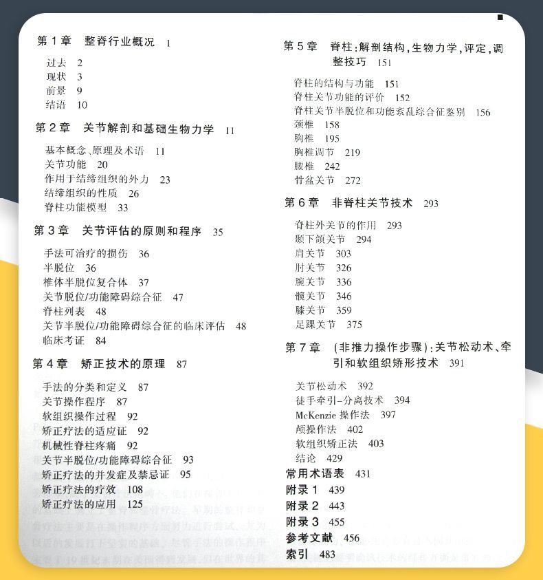 我們仍然認為,本書的鮮明特點在於它全面和廣泛地對整脊矯正技術的應用方法進行了理性的研究。其主題所覆蓋的廣度使它非常適合作為整脊技術學習者的核心教材,以及任何使用手法和推拿治療者的參考書。
