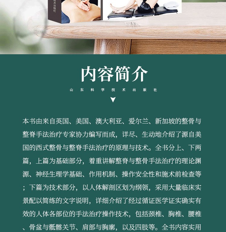 本書由來自英國、美國、澳大利亞、愛爾蘭、新加坡的整骨與整脊手法治療專家協力編寫而成,詳盡、生動地介紹了源自美國的西式整骨與整脊手法治療的原理與技術。全書分上、下兩篇,上篇為基礎部分,著重講解整脊與整骨手法治療的理論淵源、神經生理學基礎、作用機制、操作安全性和施術前檢查等;下篇為技術部分,以人體解剖區劃為綱領,採用大量臨床實景配以簡練的文字說明,詳細介紹了經過循證醫學證實確實有效的人體各部位的手法治療操作技術,包括頸椎、胸椎、腰椎、骨盆與骶髂關節、肩部與胸廓,以及四肢等。全書內容實用,適於骨科、康復、推拿、按摩、整骨、整脊等專業的人員閱讀使用。