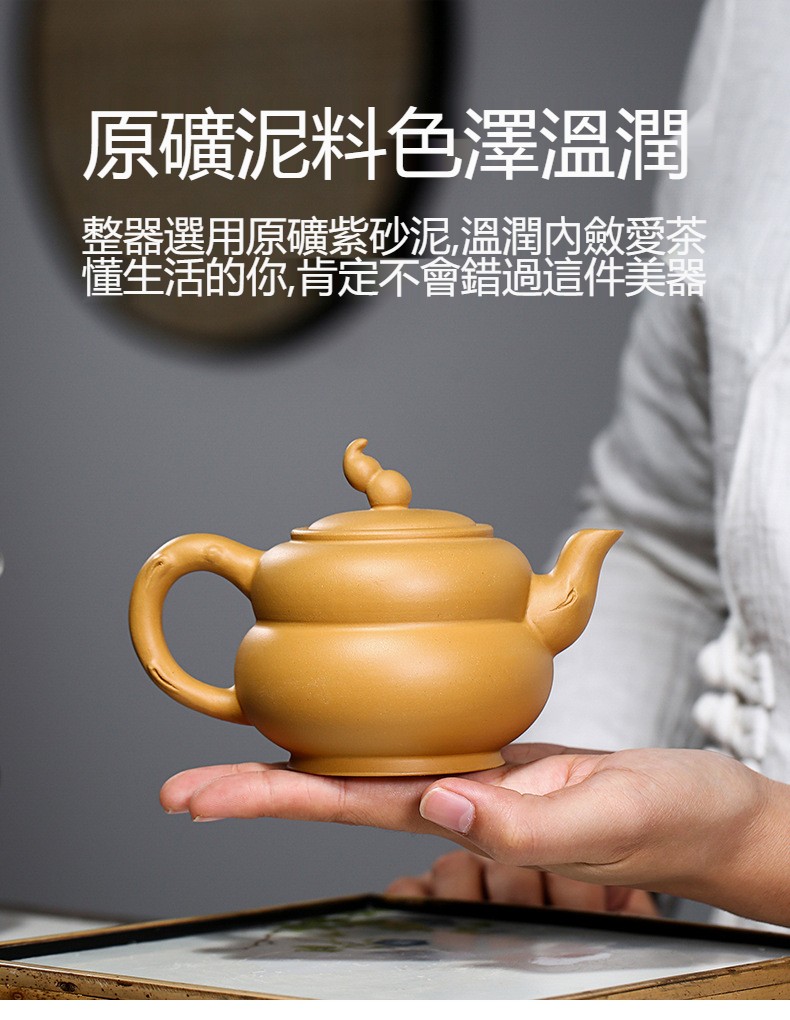宜興紫砂原礦段泥荷蓮壺(220cc)禮盒包裝 附壺繩 收藏證書