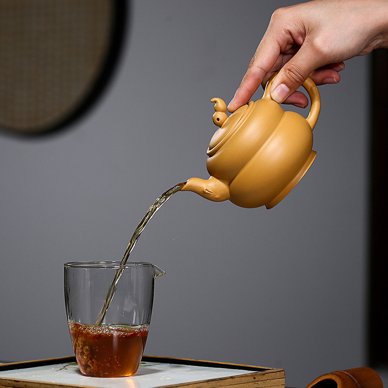 大紅袍南瓜瓣壺原礦紫砂仿古筋紋合菱壺