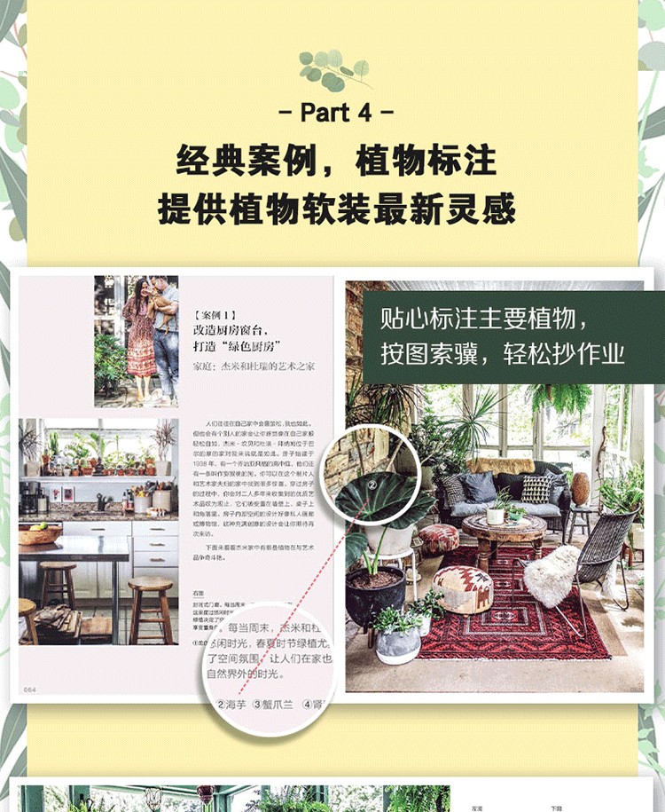 動展示瞭如何用植物打造充滿個性的室內裝飾。而且案例有詳細的