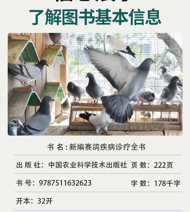 本書圖文並茂,文字簡潔扼要,圖片清晰、直觀 易懂,內容重點突出、實用性強,可供廣大養鴿者、 基層獸醫工作人員參考。