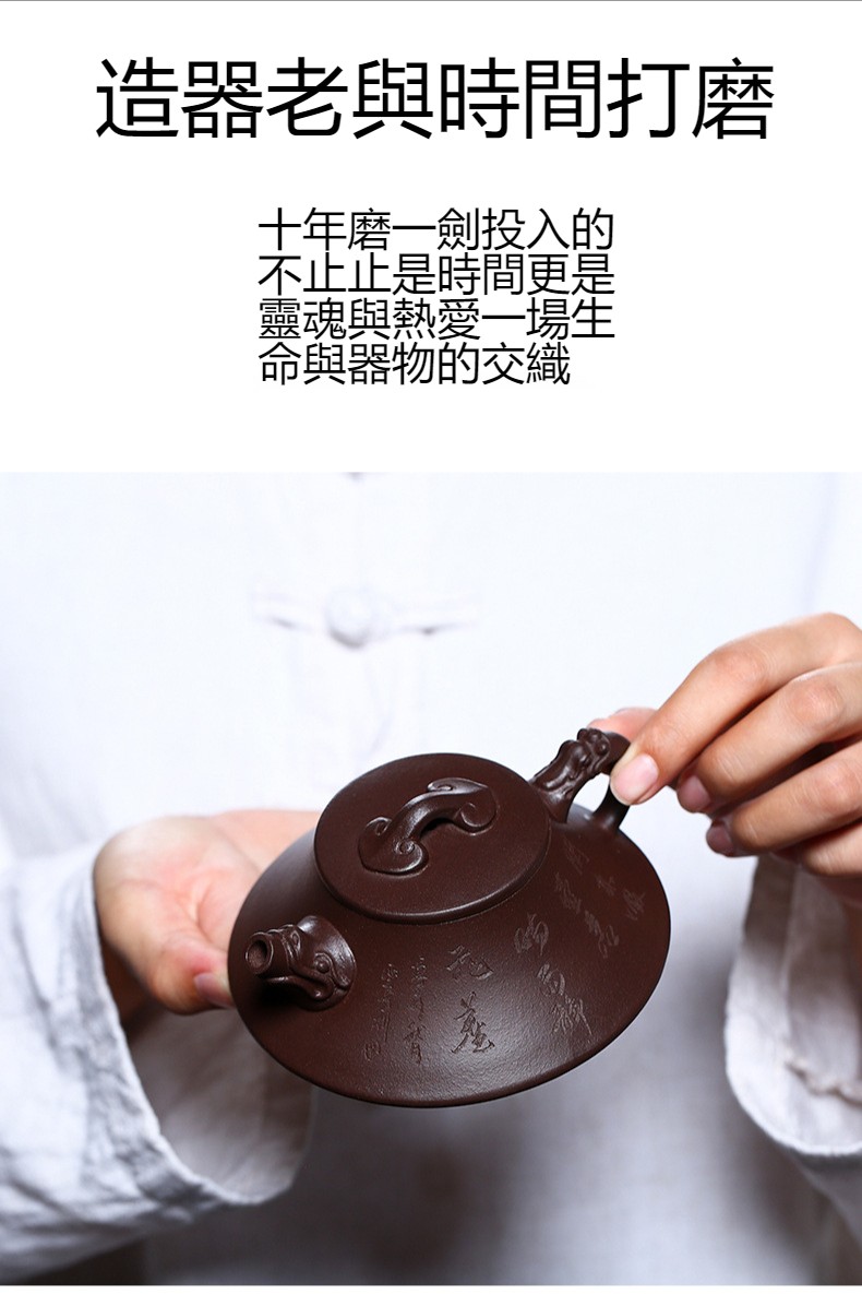 【宜興紫砂】原礦高黑泥描金 臥龍祥雲貔貅壺(260cc)破損免費補寄