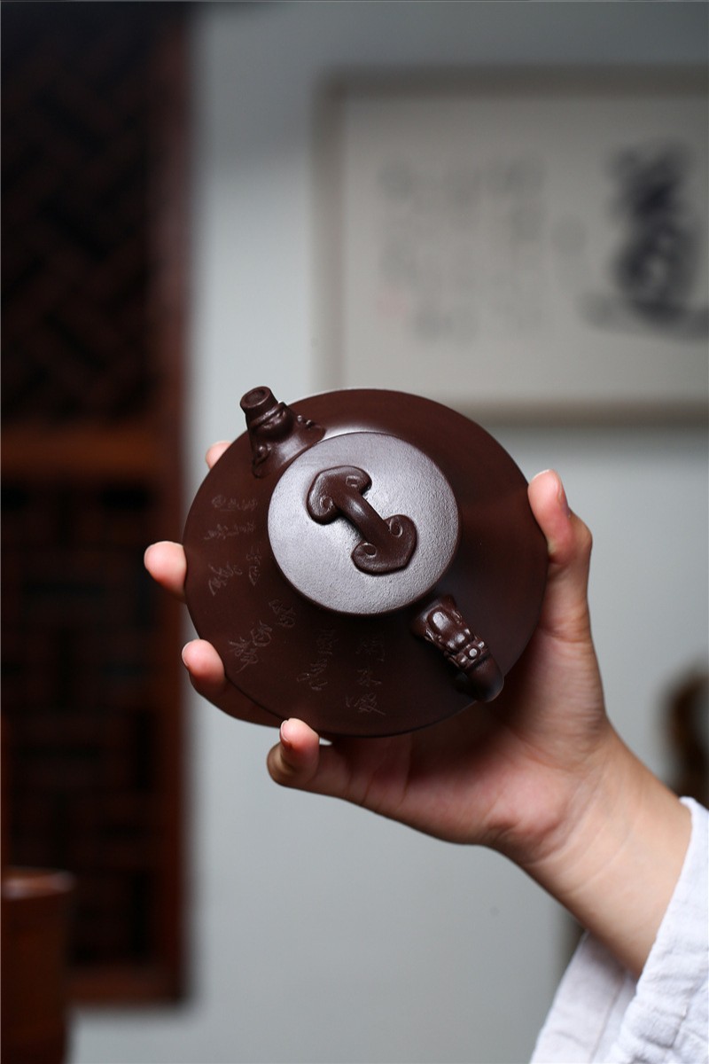 宜興手工原礦段泥玉笠刻繪紫砂壺