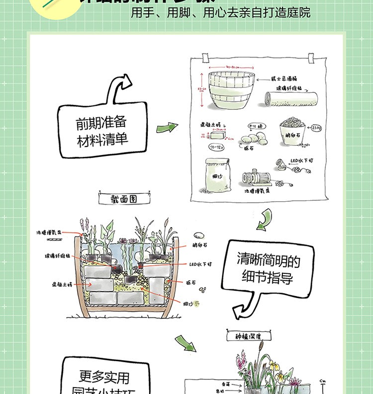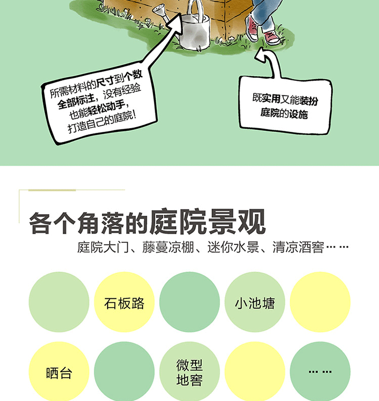 《庭院DIY:打造33個實用景觀設施》中為你收集了許多好點子,只需要你一定的耐心和動手能力,就能讓家裡有一座讓人歡喜的庭院。