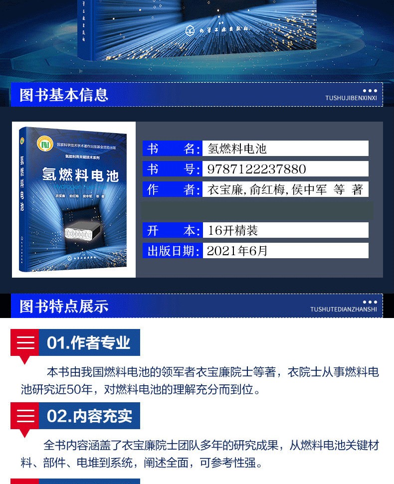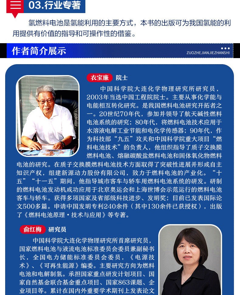 1.作者專業-《氫燃料電池》由我國燃料電池的領導者衣寶廉院士領銜編著,衣院士從事燃料電池研究近50年,對燃料電池的理解充分而到位。