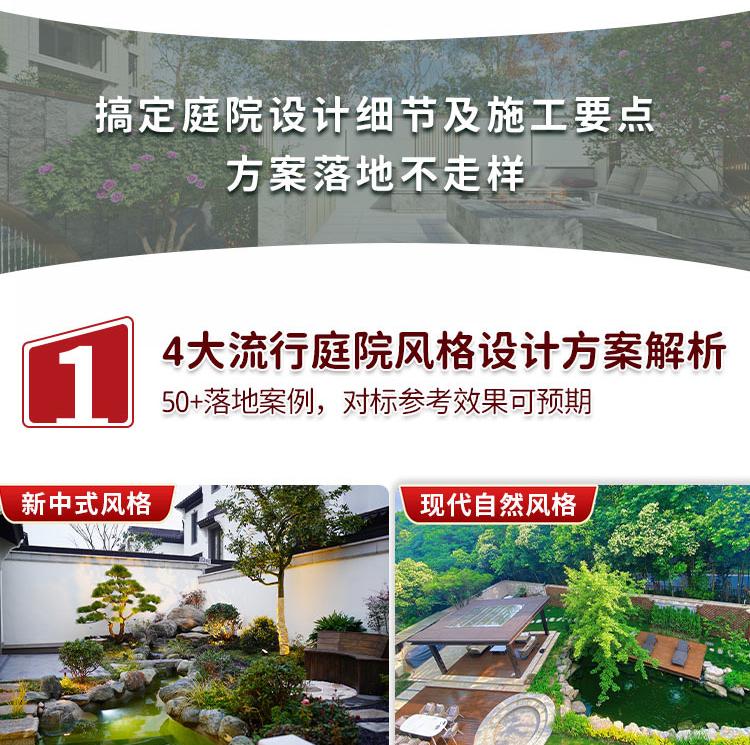 1. 含括4大流行庭院風格,新中式風格、現代簡約風格、現代自然風格及混搭風格。