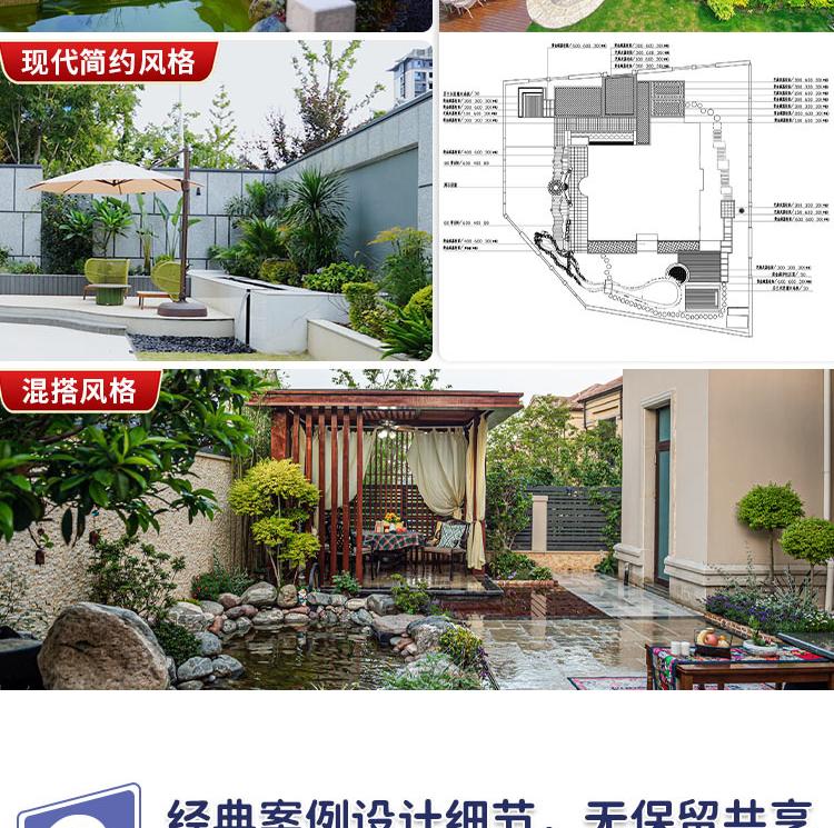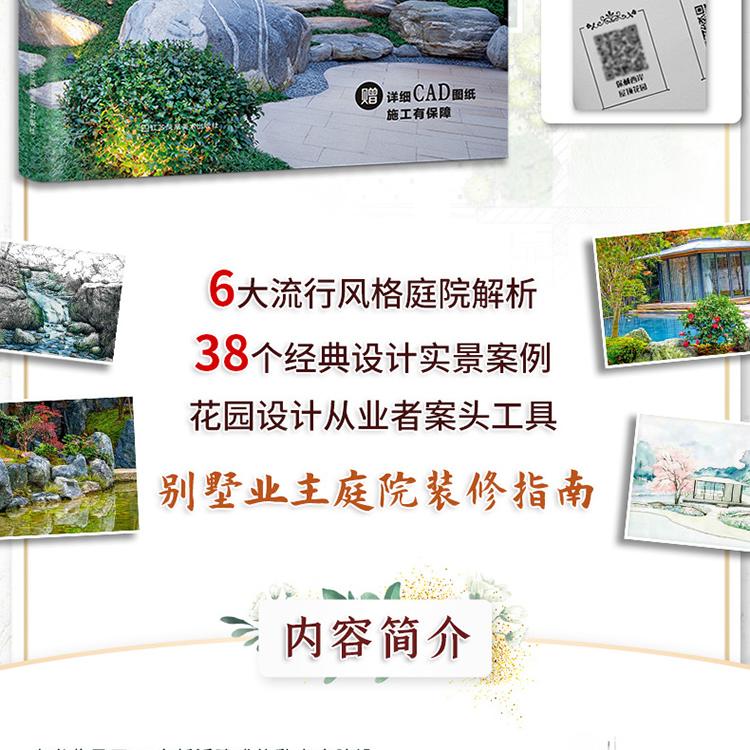 想要省錢,又要效果好! 那就一定要看這本書,全書含經典庭院設計方案50多個,不管是新中式風格、簡約風格、自然風格,還是混搭風格,都能找到對應的案例供你參考。 花園面積、工程造價、施工週期、業主需求、設計分析,平面圖、效果圖、對應實景效果、施工節點圖等,應有盡有。 買書還贈送全套PDF施工圖及細緻CAD源圖,使用方便,節省大量畫圖時間及談單成本,性價比高!