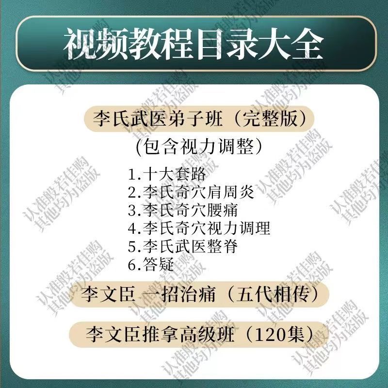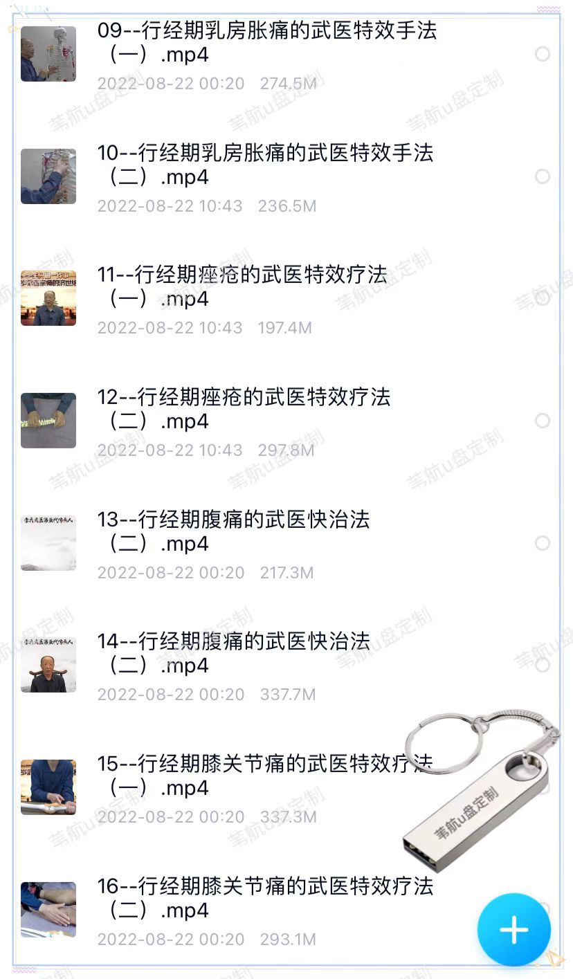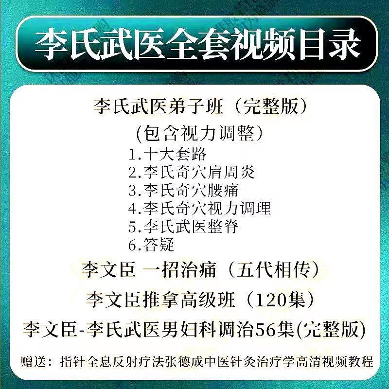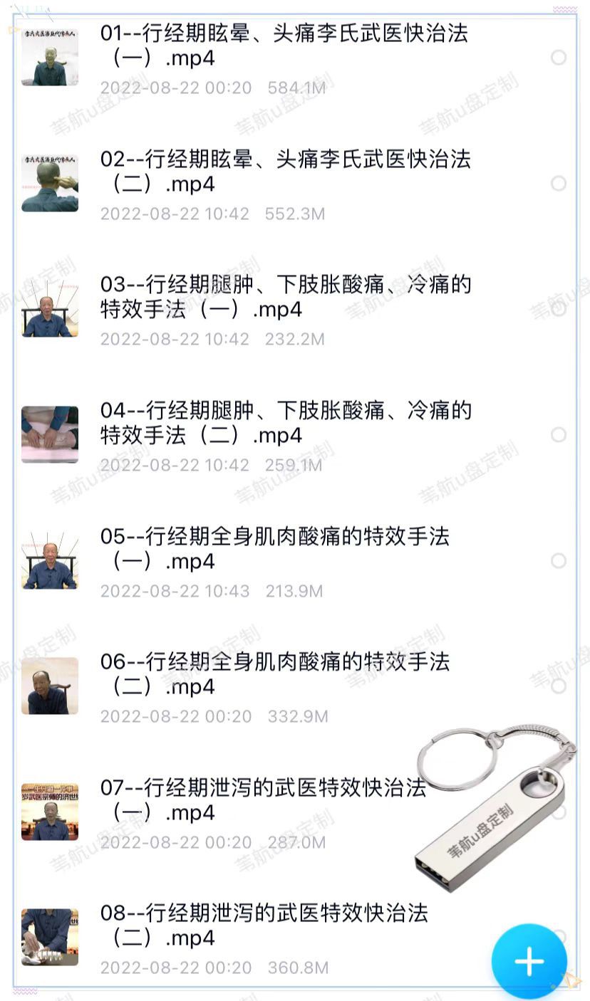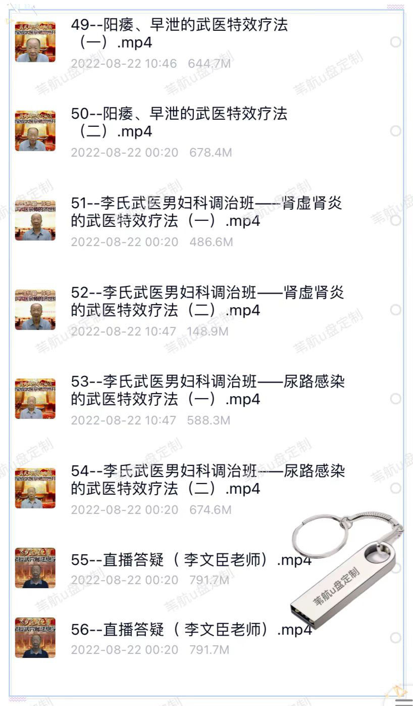 李文臣李氏武醫推拿手法全套視頻教程 李文臣武醫男婦科調治班全套視頻教程 U盤64G 即插即看 無需下載,手機電腦都能看