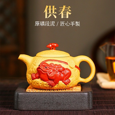 【品名】宜興原礦段泥手工 金蟾/龍龜 供春紫砂壺