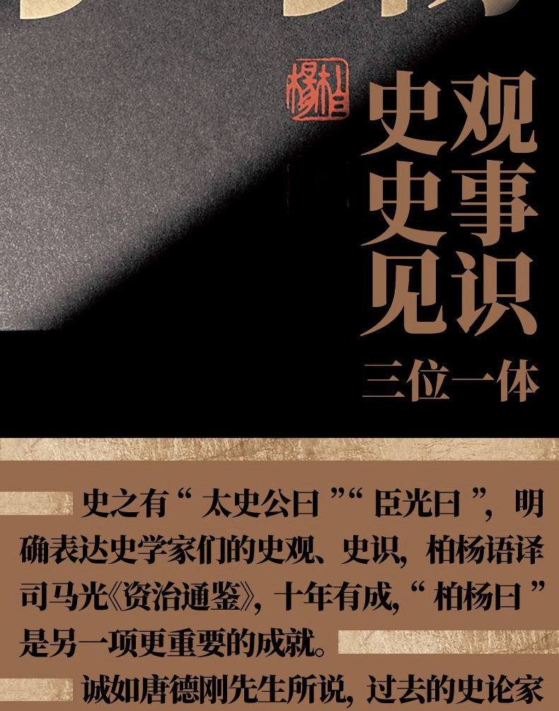 我當為《柏楊白話版資治通鑑》打邊鼓說,胡適、梁啟超和李敖,都曾為現代大中學生開列國學書,洋洋數十種的書目。 若有人也要我開個類似的書目,那我就「一書定天下」──《資治通鑑》。 看不懂原文,那就看《柏楊版白話資治通鑑》。 原因是作為一個現代中國知識分子,如想對中國固有文明知道點大略,最實際而可行的工作,便是一部《資治通鑑》。