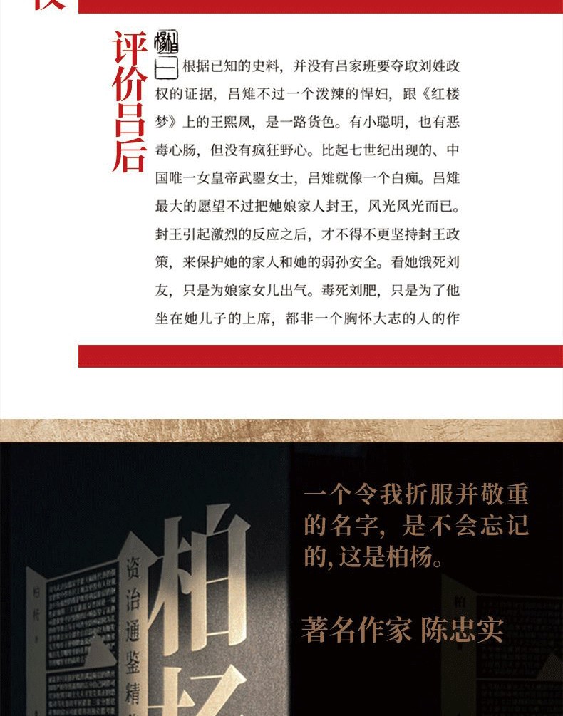 本書一事一議,小細節、大事件一目了然,簡明易懂、生動流暢。 柏楊作“柏楊曰”,其旨在引發讀者的獨立思考,不局促於中國傳統儒學價值觀的一貫窠臼,進而讀者在認知外部世界或面臨人生抉擇時,有足夠能力做出獨立、自主的 判斷。