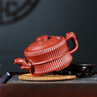 宜興紫砂原礦大紅袍手工井欄紫砂壺