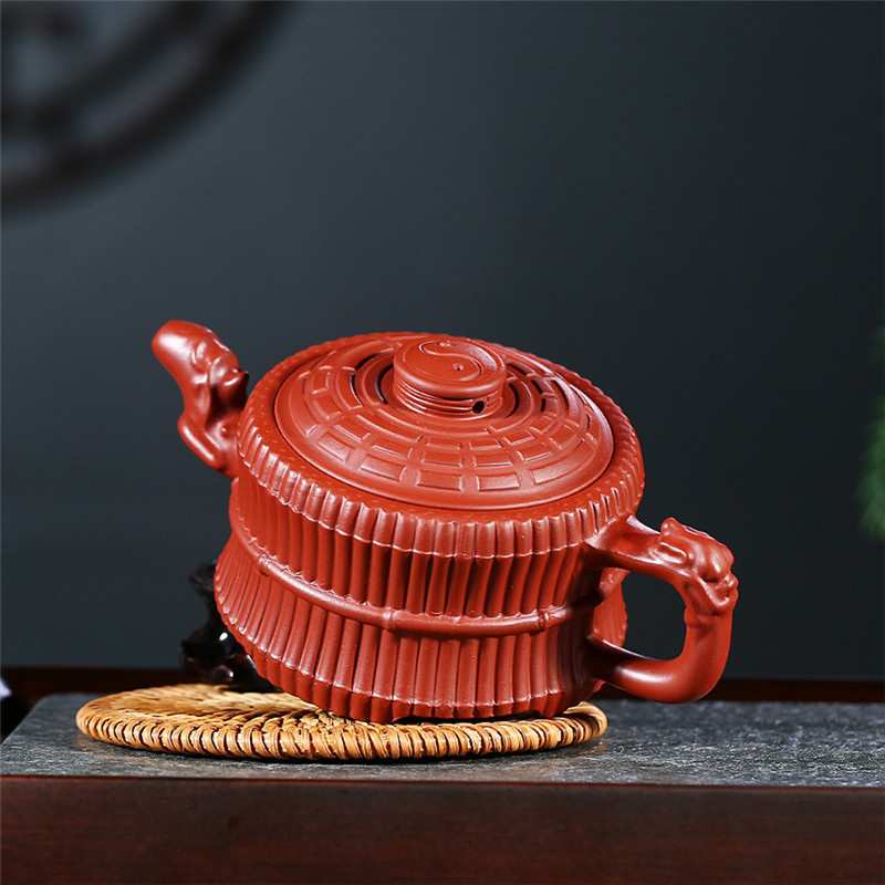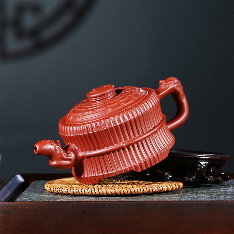 宜興丁蜀鎮原礦大紅袍竹編週盤壺