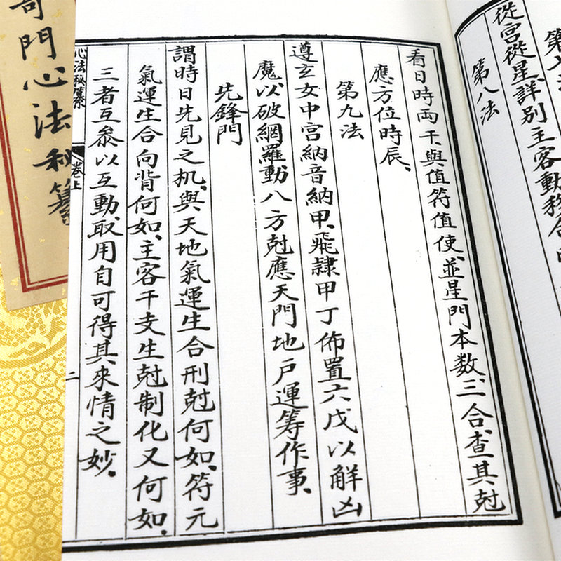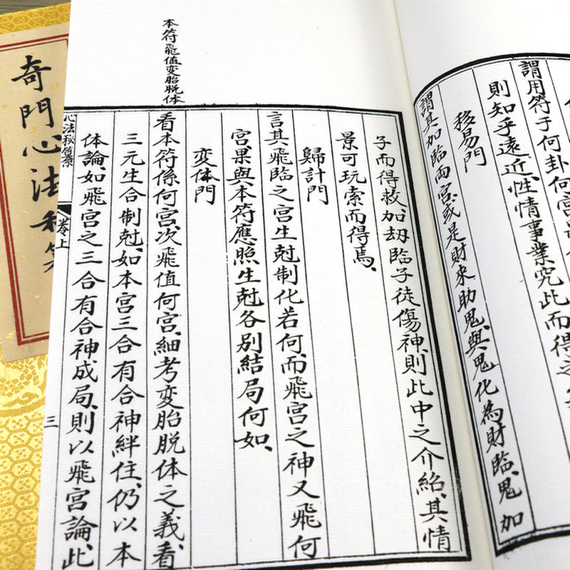 《奇門仙機》一書傳自內宮,*工綏寫,當世無兩,是為難得一見的奇門秘籍,為《奇門鳴法》的傳人王力軍先生所收藏。 是書包括《奇門八卦先天要論》、《八門宜忌動靜克應佔驗》、《八門分論》、《窮神明物章》等四個部分,均為奇門遁甲所未面世 的秘典。 奇門遁甲是中國古老的一種術數,也是一門傳統珍貴文化遺產。 「奇門遁甲」的意思是由「奇」門」「遁甲」三個概念組成。 「奇」是乙、丙、丁三奇;「門」是休、生、傷、杜、景、死、驚、開八門;「遁」即隱藏,「甲」指六甲,即甲子、甲 戌、甲申、甲午、甲辰、甲寅,「甲」在十幹中Z為尊貴,它藏而不現,隱遁於六儀之下。 在中國傳統文化中,奇門遁甲以易經八卦為基礎,結合星相曆法、天文地理、八門九星、陰陽五行、三奇六儀等要素,是我國預測學中集大成者、是易經Z高 層次的預測學,因此奇門遁甲自古稱為帝王學。