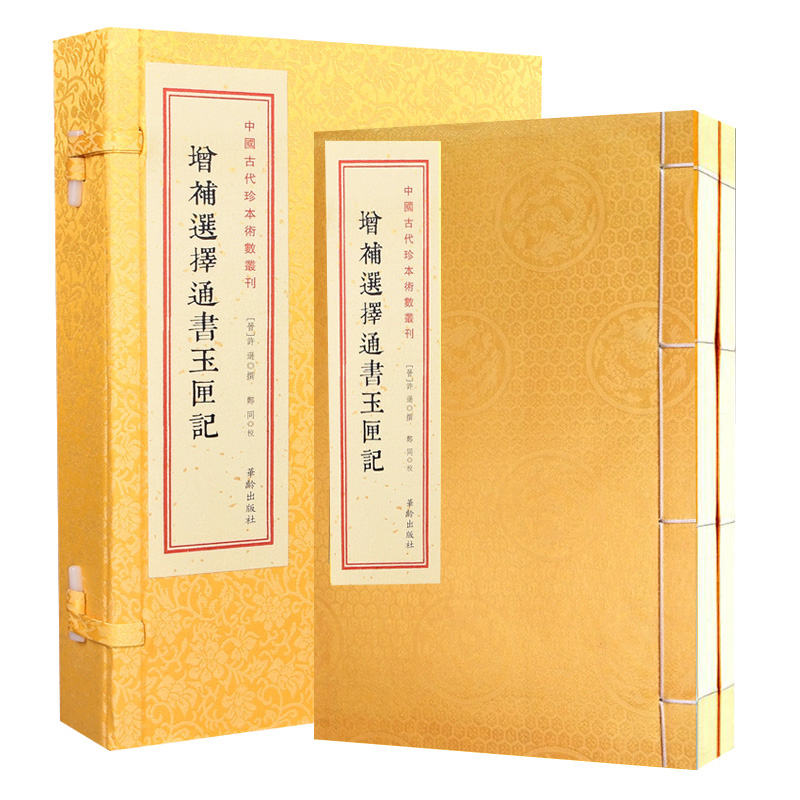 《增補選擇通書玉匣記》一書為東晉道士許真君所寫。 許真君,又稱許旌陽,名遜,字敬之,南昌人。 博通經史,明天文地理、歷律五行、謔緯之書,尤嗜神仙修練之術。 東晉寧康二年,許遜已一百三十六歲。 八月望日,舉家四十二口,同日從豫章西山拔宅升天,雞犬隨之。 著有《太上靈寶淨明飛仙度人經法》、《靈劍子》、《石函記》、《玉匣記》等書。 從清代至民國以來,《玉匣記》就是家家的寶典,是人們「貴中求和,近利遠害」的理論基礎與人生指南。 《增補選擇通書玉匣記》以清光緒刻本為底本影印出版,集各類占卜術之大成,其內容包羅萬象,擇吉、風水、佔夢、五行、命理、耕種、眼跳、耳鳴、符咒等 妙術秘法應有盡有,甚至相貓納犬等各種奇奇怪怪的相法,都可以在其中找到相關資料,是研究中國民俗學的*之書。
