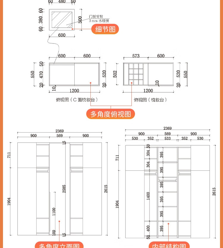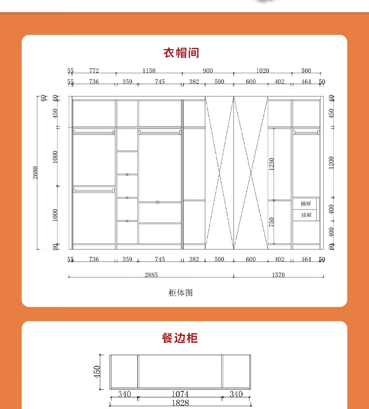 心儀的櫃體樣式卻苦惱於沒有對應的尺寸圖?