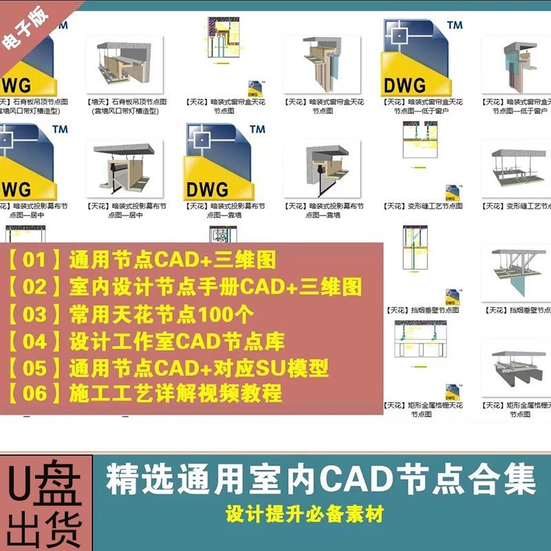 工地交底 施工工藝視頻全解(128G 隨身碟出貨 無需下載 即插即看)室內設計暗藏懸挑內嵌收口