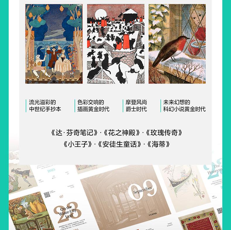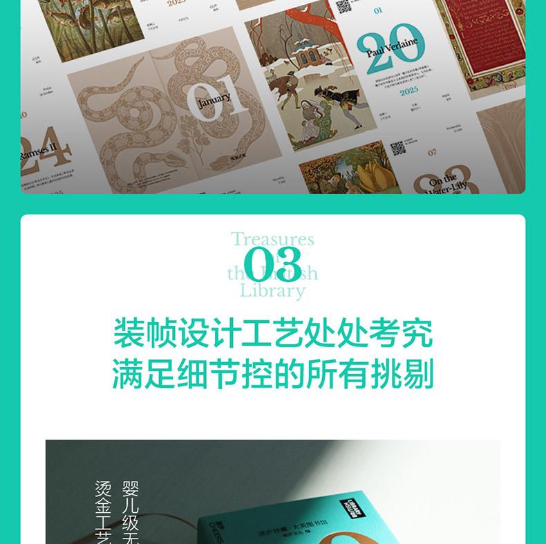 《湛廬珍藏·大英圖書館.2025》以生肖文化、古典音樂、文學經典為靈感,選取了12個主題(瑰麗靈蛇、春之序曲、花之圓舞曲、動物狂歡節、綠野仙蹤、仲夏夜之夢、夏之牧歌、海底兩萬裡、月光奏鳴曲、群星閃耀時、如歌的行板、冬日小夜曲),集音樂、文學、科學、藝術於一體,內容豐富,時間空間跨越大,每一天選取一張顏值高且內涵豐富的珍貴館藏。