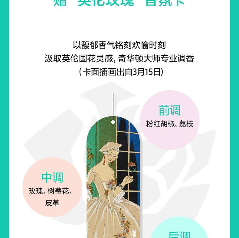 2025年湛廬珍藏歷產品新增「英倫玫瑰」香氛卡,復刻20世紀20年代插畫大師喬治·巴比爾經典插畫,以英國國花玫瑰為靈感,由奇華頓大師調香,引進無人之境玫瑰香氛(前調:粉紅胡椒;荔枝;/中調:玫瑰;樹莓花;皮革;/後調:紙莎草;琥珀;麝香;檀木),以馥鬱香氣銘刻歡愉時刻,珍藏寶貴記憶,讓每一天「聞起來」更美好。