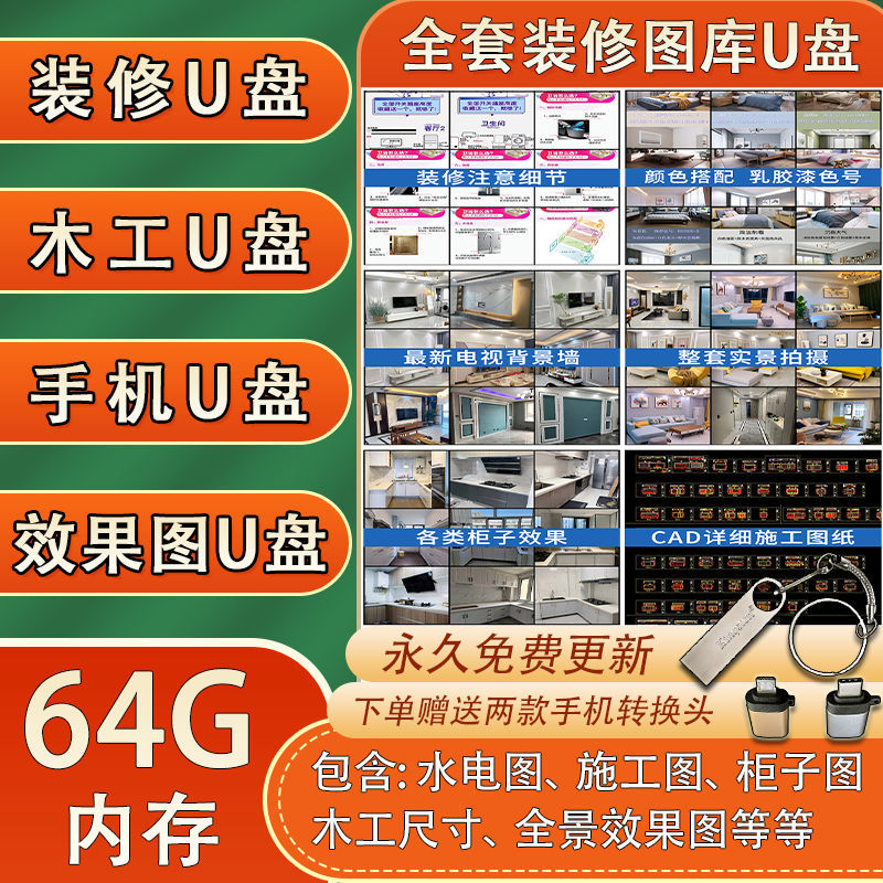 室內裝修全套裝潢效果圖100G U盤教學 木工高清各風格實景案例(128G U盤發貨,無需下載 即插即看,手機電腦都能觀看)