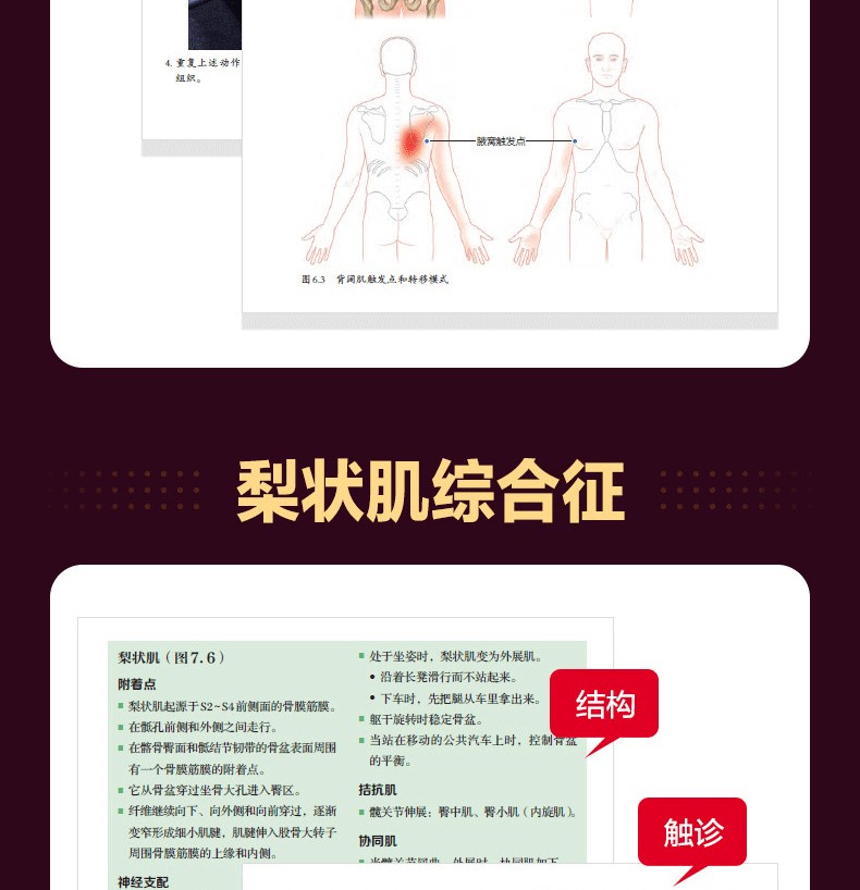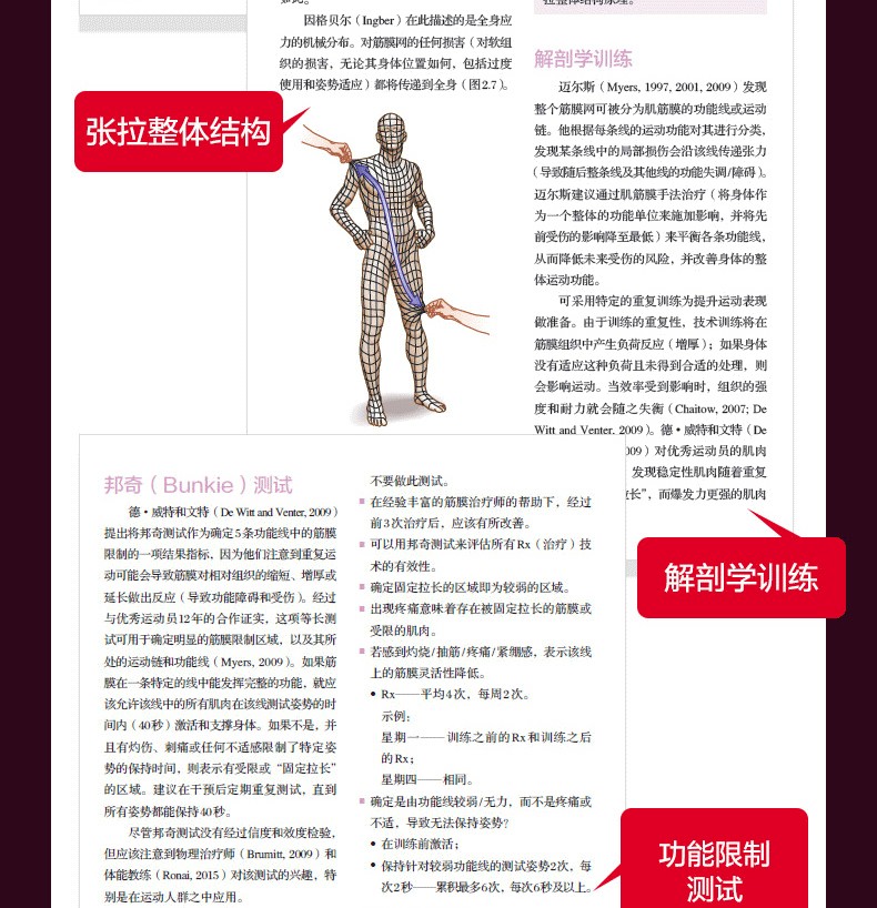 20多年物理治 療從業經驗總結,體能訓練及運動康復專業人士推薦 ·介紹生理組成、張拉整體結構、功能測試和治 療注意事項等筋膜知識 ·講解骶髂關節、梨狀肌及相關功能鏈軟組織的解剖結構與運動功能 ·圖文展示骶髂關節功能障礙和梨狀肌綜合徵的評估與治 療方法 ·融合多種評估方法與治 療技術 ——評估方法:步態評估、神經動力學評估、運動功能評估、肌肉長度及力量評估、疼痛評估和動作模式評估等 ——治 療技術:幹針療法、運動膠布療法、肌肉能量技術、軟組織放鬆技術、器械輔助的軟組織動員術等