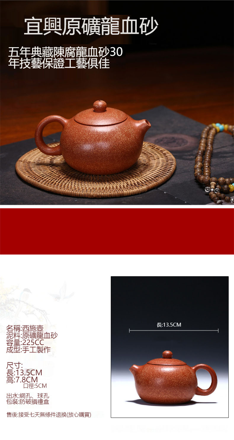 宜興手製小容量大紅袍西施紫砂壺100cc