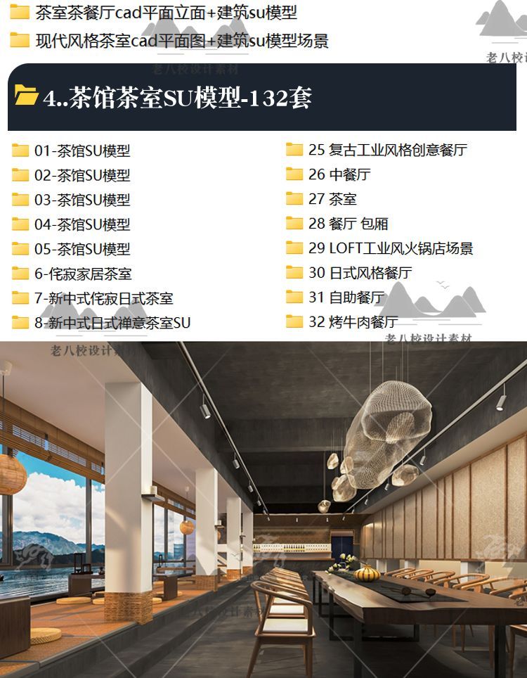 Sketchup草圖大師 室內家居裝潢SU模型 家具別墅新中式現代客廳餐廳臥室 SU素材庫