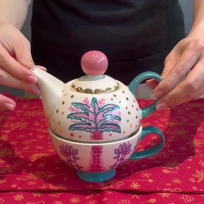 汝窯開片陶瓷冰裂西施壺& 1:1復刻明成化鬥彩雞缸杯(130ml)