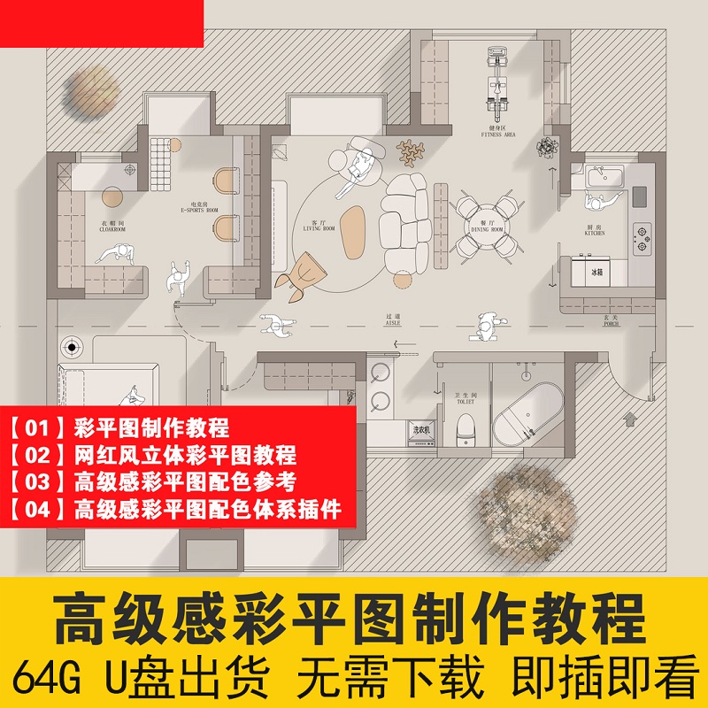 酷家樂 全套視頻教程U盤64G (U盤發貨 無需下載 即插即看)軟件 燈光 渲染 模型 室內設計 裝修效果圖全套視頻教程
