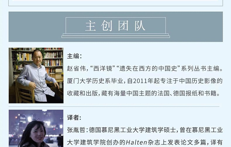 恩斯特·伯施曼(Ernst Boerschmann,1873—1949):德國皇家柏林工業高等學院(柏林工業大學前身)教授,中國建築攝影鼻祖,考察並記錄中國古代建築的人。 1906—1909年,在德意志帝國皇家基金會的支持下,伯施曼跨越14省,行程數萬裡,對中國的皇家建築、寺廟、祠堂、民居等進行了的考察,留下了8000張照片 、2500張草圖、2000張拓片和1000頁測繪記錄。 1932年,伯施曼受邀成為中國營造學社的通訊研究員。 1933—1935年,被特聘為中國傳統建築遺產顧問。 出版有《中國建築與景觀》《中國建築》《普陀山》《中國祠堂》《中國建築陶藝》《中國寶塔I》《中國寶塔II》等作品。