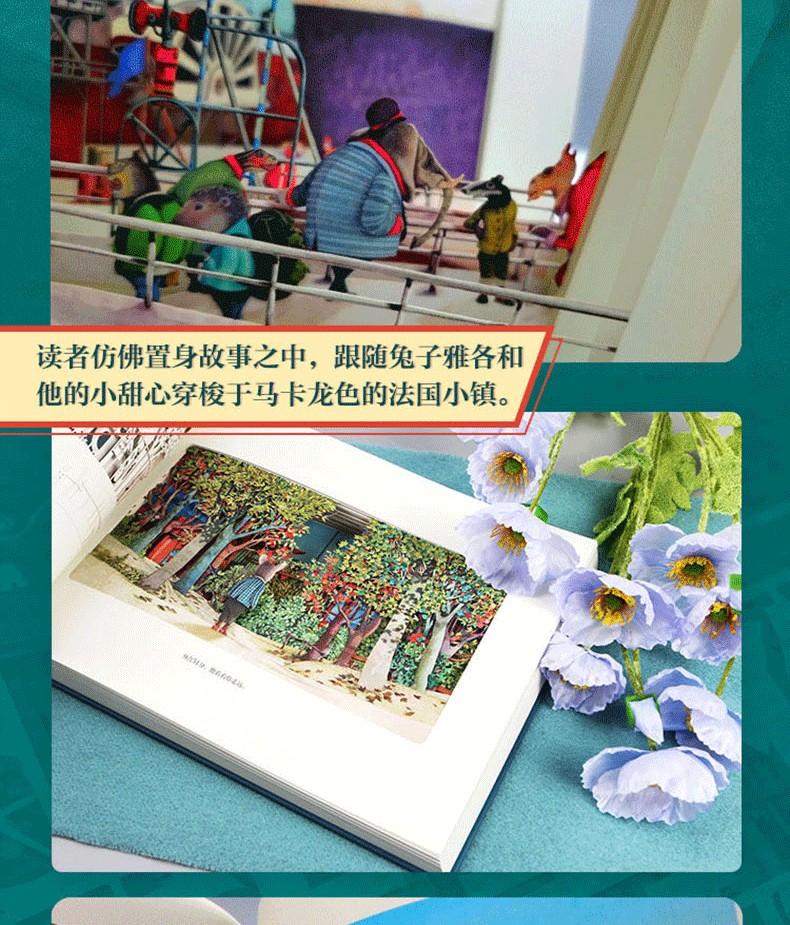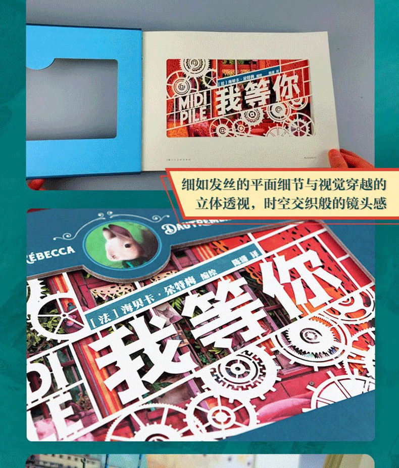 212頁全激光雕刻的傑出紙品,帶來新穎、驚豔的閱讀體驗,細如髮絲的平面細節與視覺穿yue的立體透視,時空交織般的鏡頭感,讀者彷彿置身故事之中,跟隨兔子雅各和他的小甜心穿梭於馬卡龍色的小鎮。