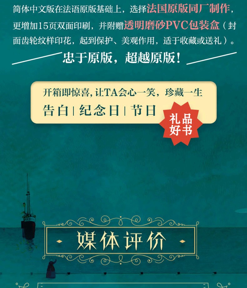 在法文原版基礎上,增加15頁雙面印刷,並附贈透明磨砂PVC包裝盒(封面齒輪紋樣印花,起到保護、美觀作用,適於收藏或送禮)。