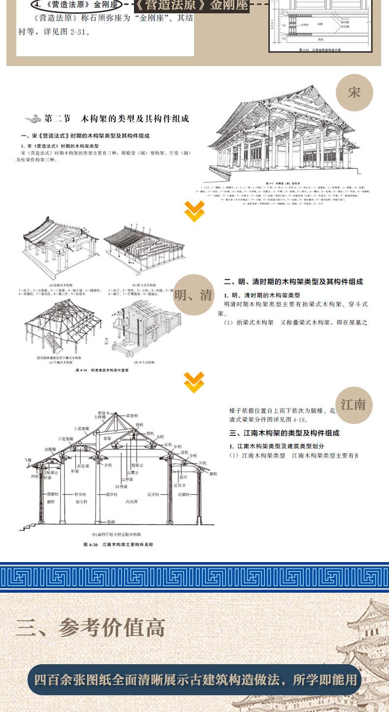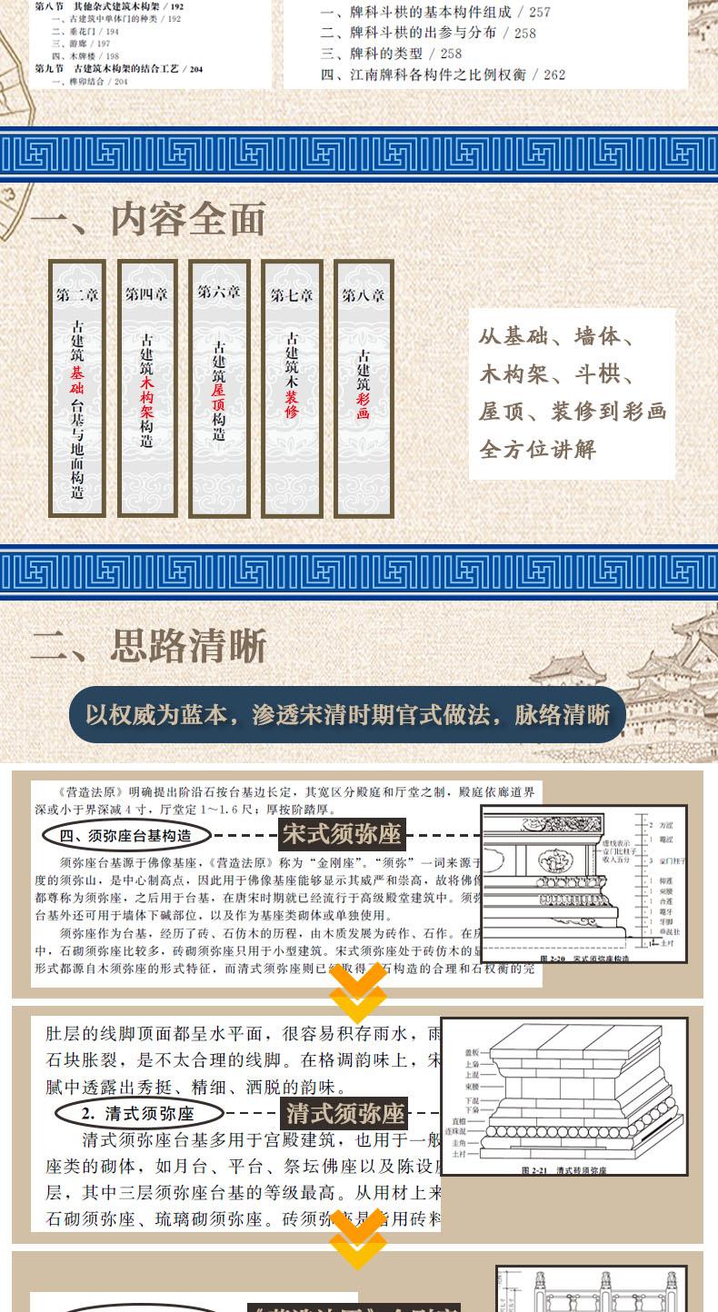 2.思路清晰。以權威著作為藍本,主要側重宋清兩個時期的官式做法進行對比,闡述古建築構造的發展及變化,脈絡清晰。