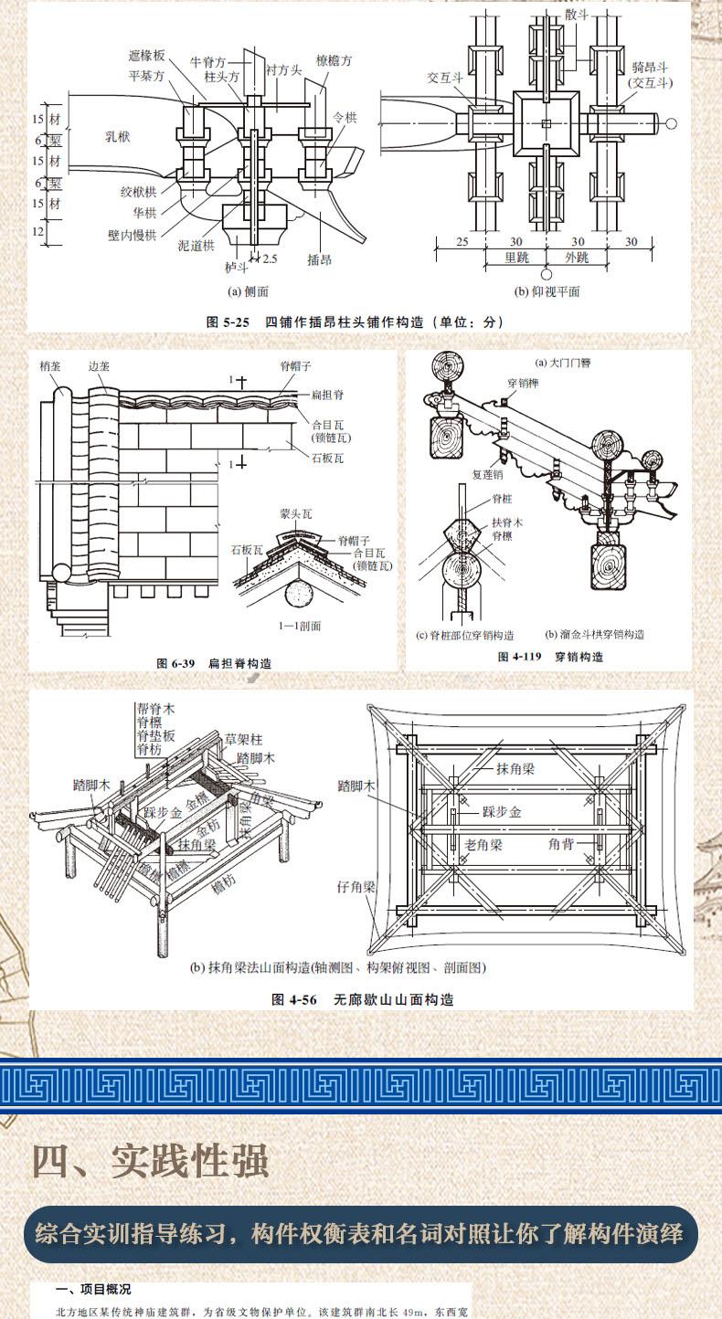 本書可作為高等院校及高職高專古建築工程技術專業的教學用書,也可作為崗位技術培訓及從事古建築設計、施工、監理等的工作人員的參考用書。