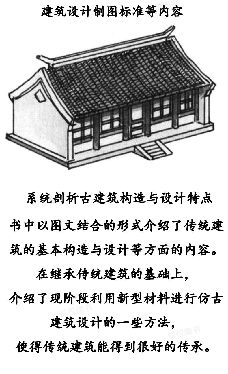 1.內容。從古建築基礎、牆體、木構架、鬥栱、屋頂、裝修到彩畫,講解古建築構造知識。