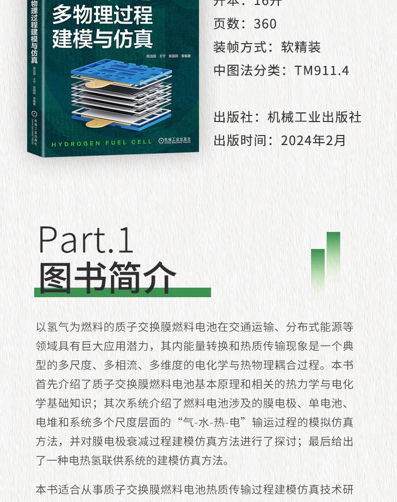 本書適合從事質子交換膜燃料電池熱質傳輸過程建模模擬技術研究、產品開發等相關學者和工程設計人員閱讀使用,還可作為高年級本科生和研究生課程參考教材,供能源動力、儲能、化學等相關學科的教師和學生使用。