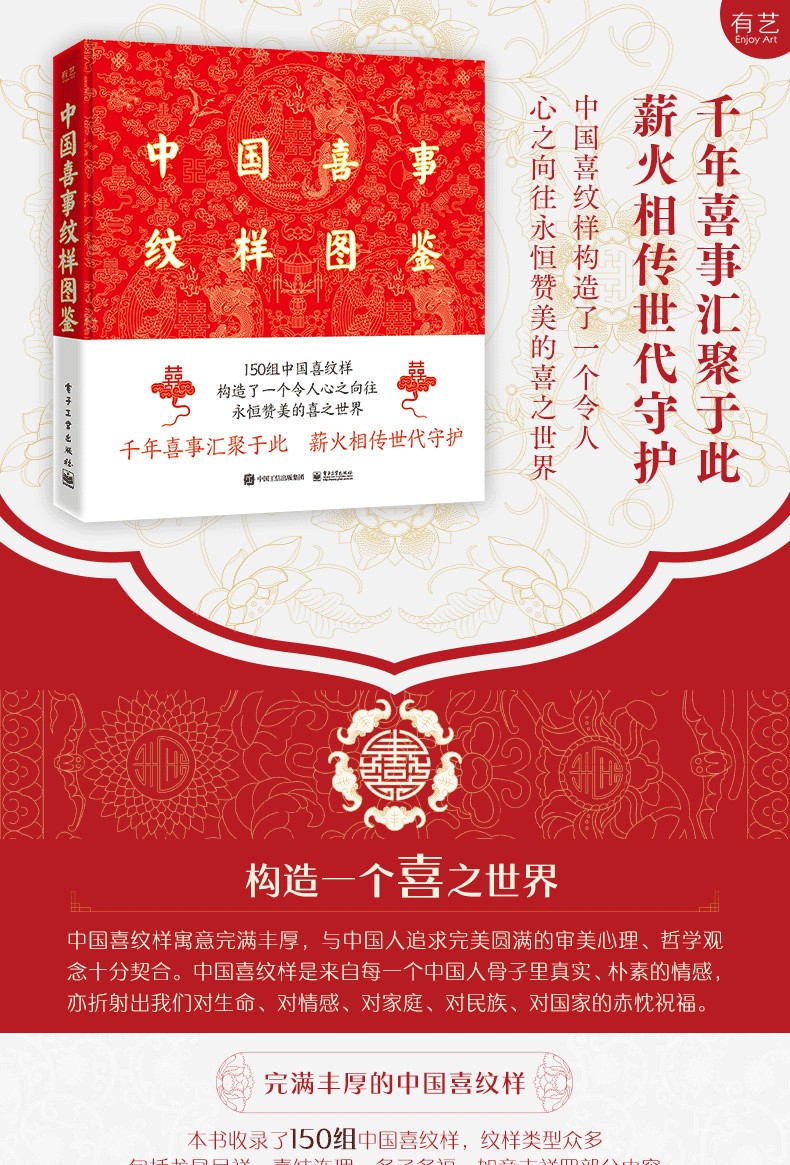 「凡幸福的事、開心的事、幸運的事、得意的事,中國人統統可用「喜事」概括。 喜事包含了精神上的滿足和物質上的豐裕,人生諸多美妙的時刻更是笑逐顏開,如 逢年過節、婚嫁、生育、壽誕、喬遷、開業、升學等。 在幾千年的歷史文明長河中,在廣袤無垠的沃土上,喜事成了人們世世代代的願景,也成就了色彩繽紛而厚重 的中國喜文化。 中國喜紋樣是來自每個中國人骨子裡真實、樸素的情感,亦折射出我們對生命、對情感、對家庭、對民族、對國家的赤忱祝福。 本書收錄了150 組 中國喜紋樣,紋樣類型眾多,包括龍鳳呈祥、喜結連理、多子多福、......